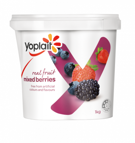 Skim milk, milk solids, sugar, berries (5%) (blackberries, strawberries, blueberries), cream, thickeners (modified starch, xanthan gum), gelatine, natural flavours, boysenberry concentrate, preservative (potassium sorbate), acidity regulators (potassium citrate, citric acid), natural colour (black carrot concentrate, black currant concentrate), cultures.